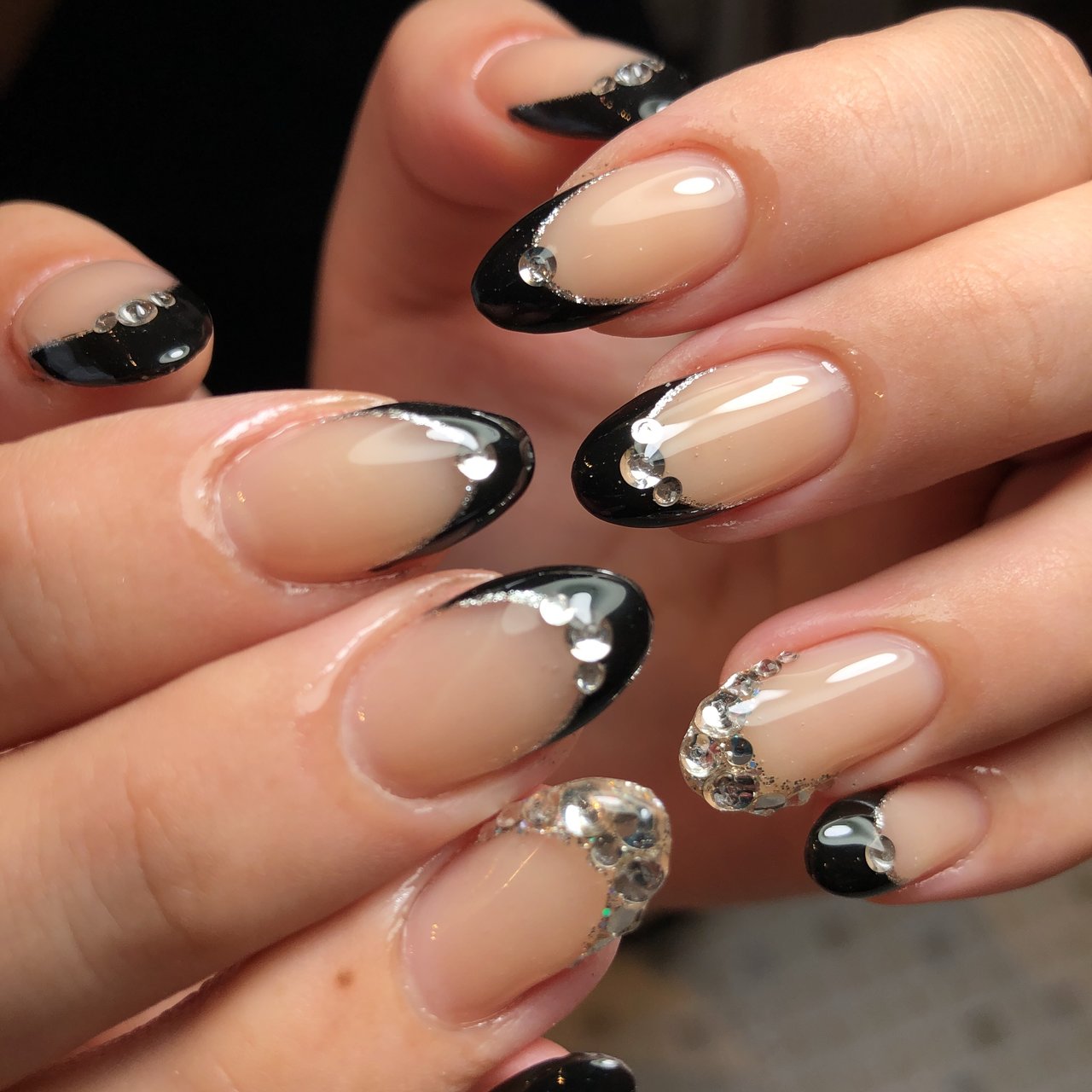 シェリーラメール على تويتر 王道の白フレンチも可愛いけど 黒のフレンチも可愛くておすすめです 池袋ネイル 新宿ネイル 原宿ネイル ネイルアート ネイルデザイン オーロラネイル ビジューネイル 韓国ネイル キラキラネイル フレンチネイル